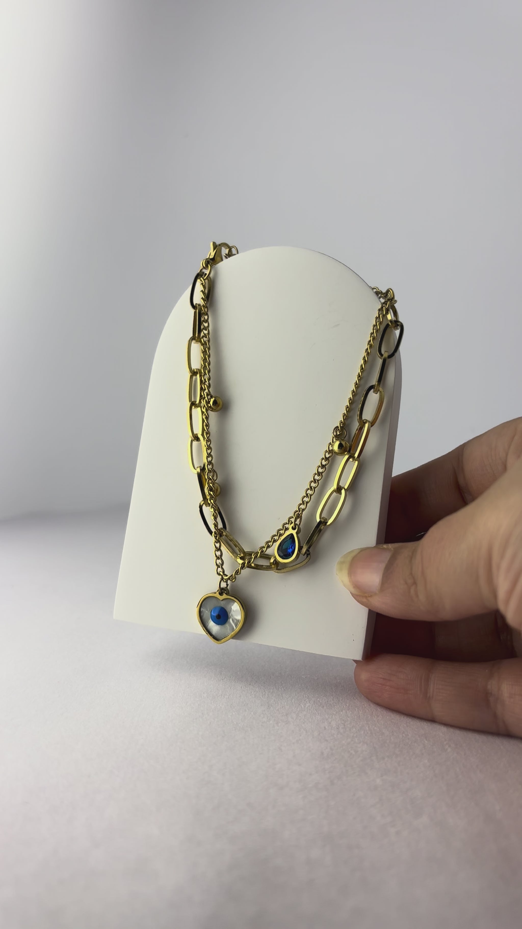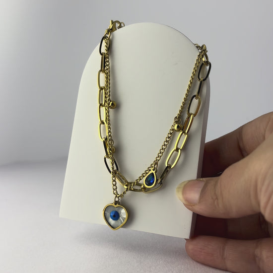 A yellow gold-plated bracelet adorned with a sparkling evil eye crystal charm, offering style, elegance, and protection in one.