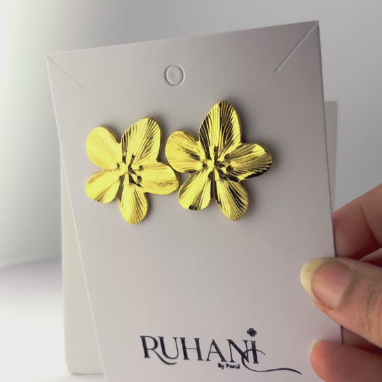 Gold-plated floral stud earrings with a textured finish, adding a touch of elegance and charm to any look.
