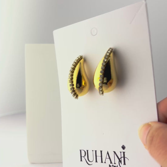 Gold-plated teardrop stud earrings adorned with a line of sparkling crystals, blending timeless elegance with modern shine.