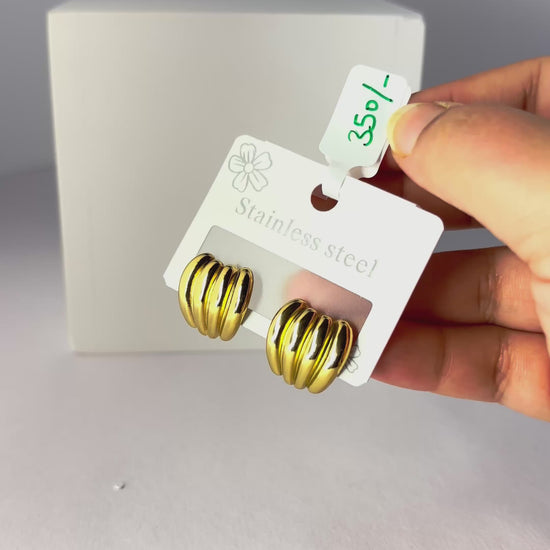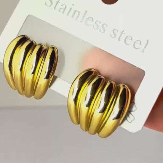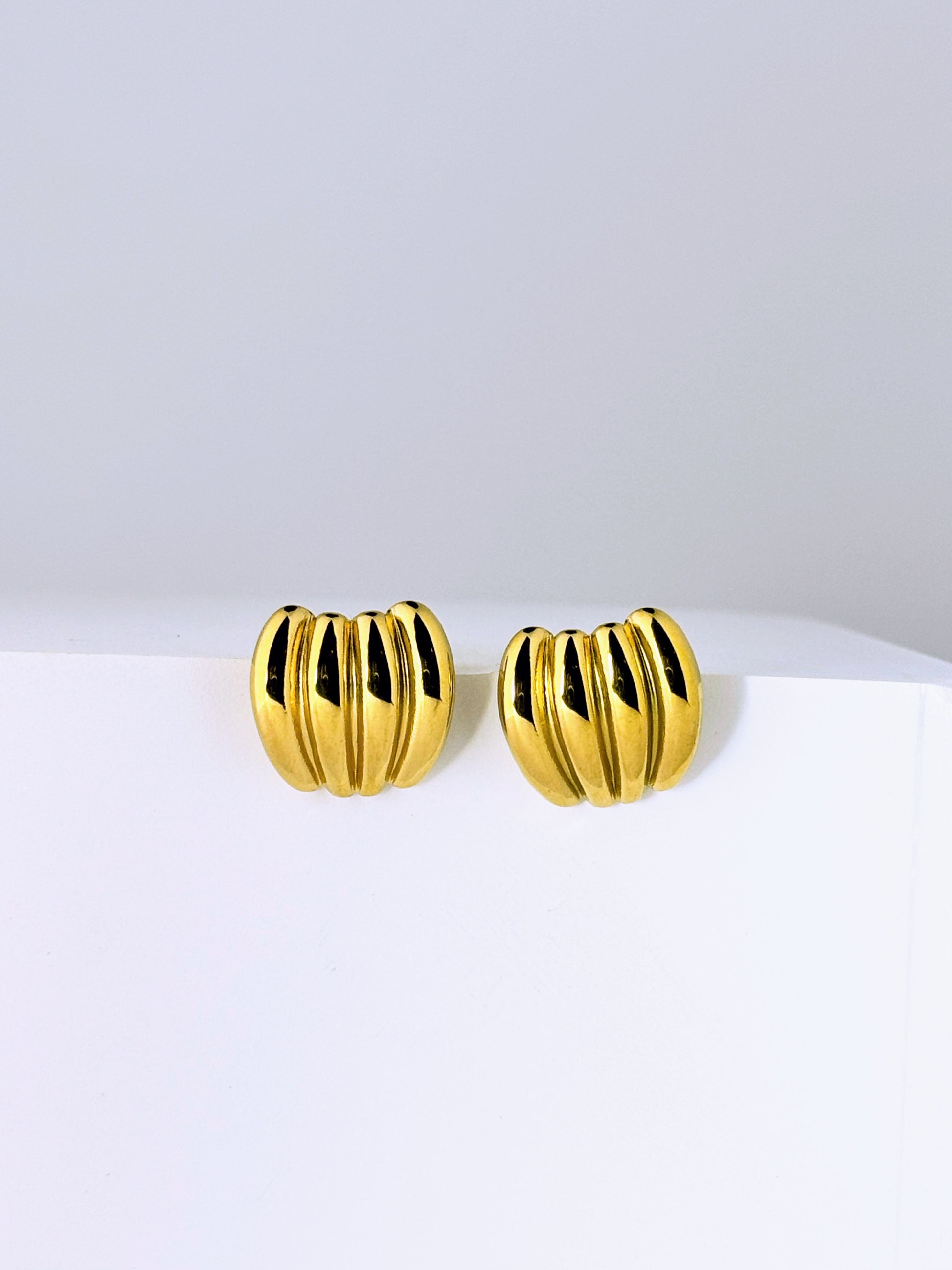 Gold-plated stud earrings with a ridged dome design, perfect for adding a modern, statement touch to your style.
