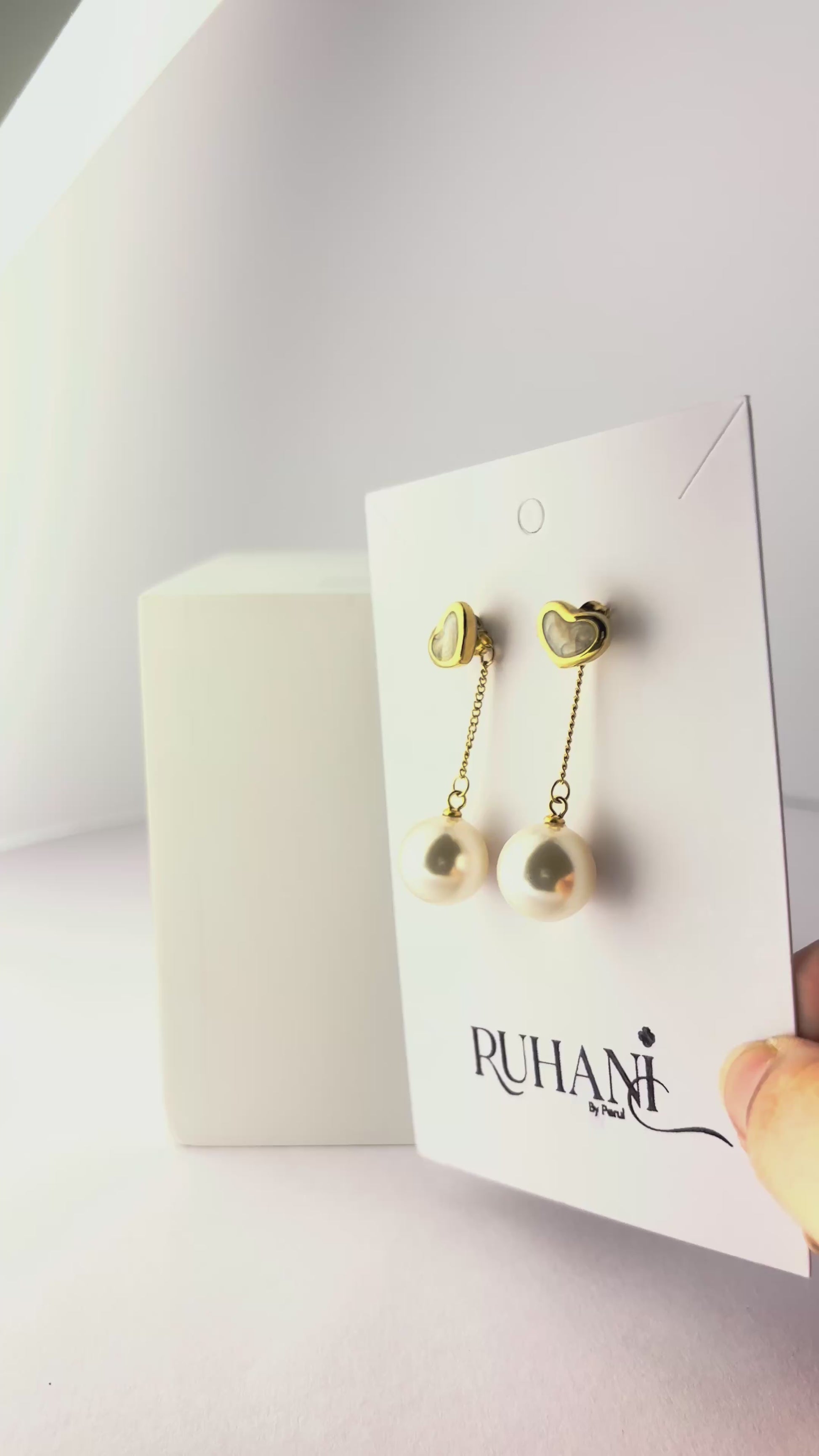 Gold-plated earrings with dainty heart studs and graceful pearl drops, blending romance with timeless sophistication.