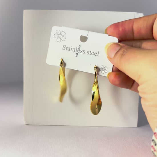 Elegant gold-plated drop earrings with a modern twisted design, crafted to add a bold yet graceful touch to any look.