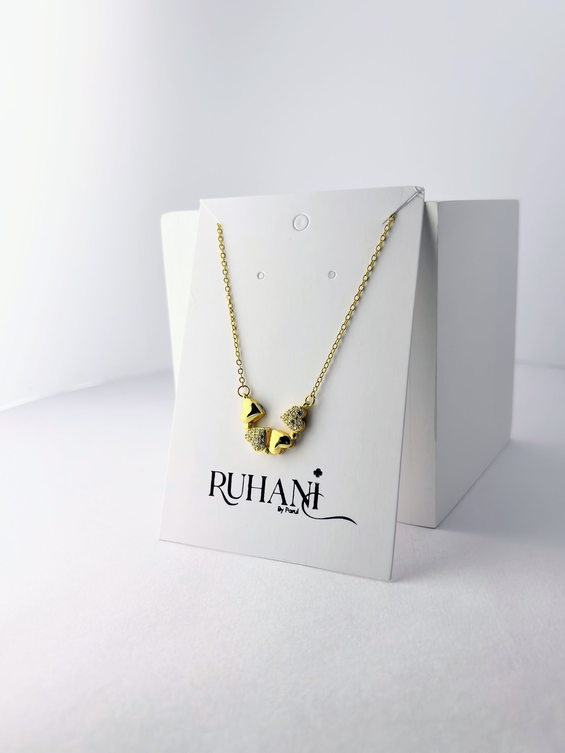 An antique-style gold necklace with dual magnetic hearts, designed to connect love and elegance in one timeless piece.