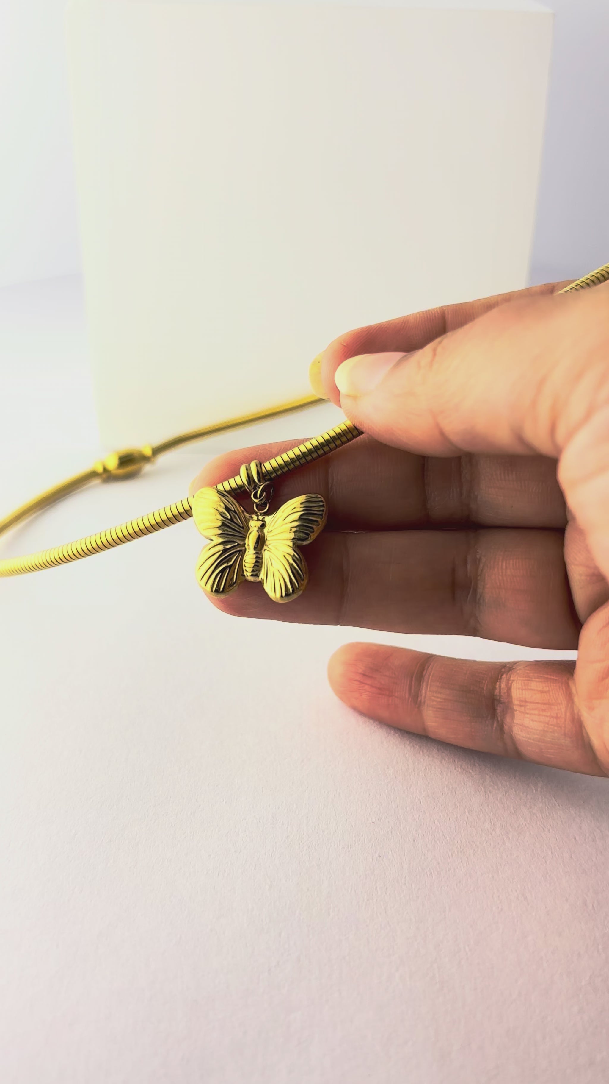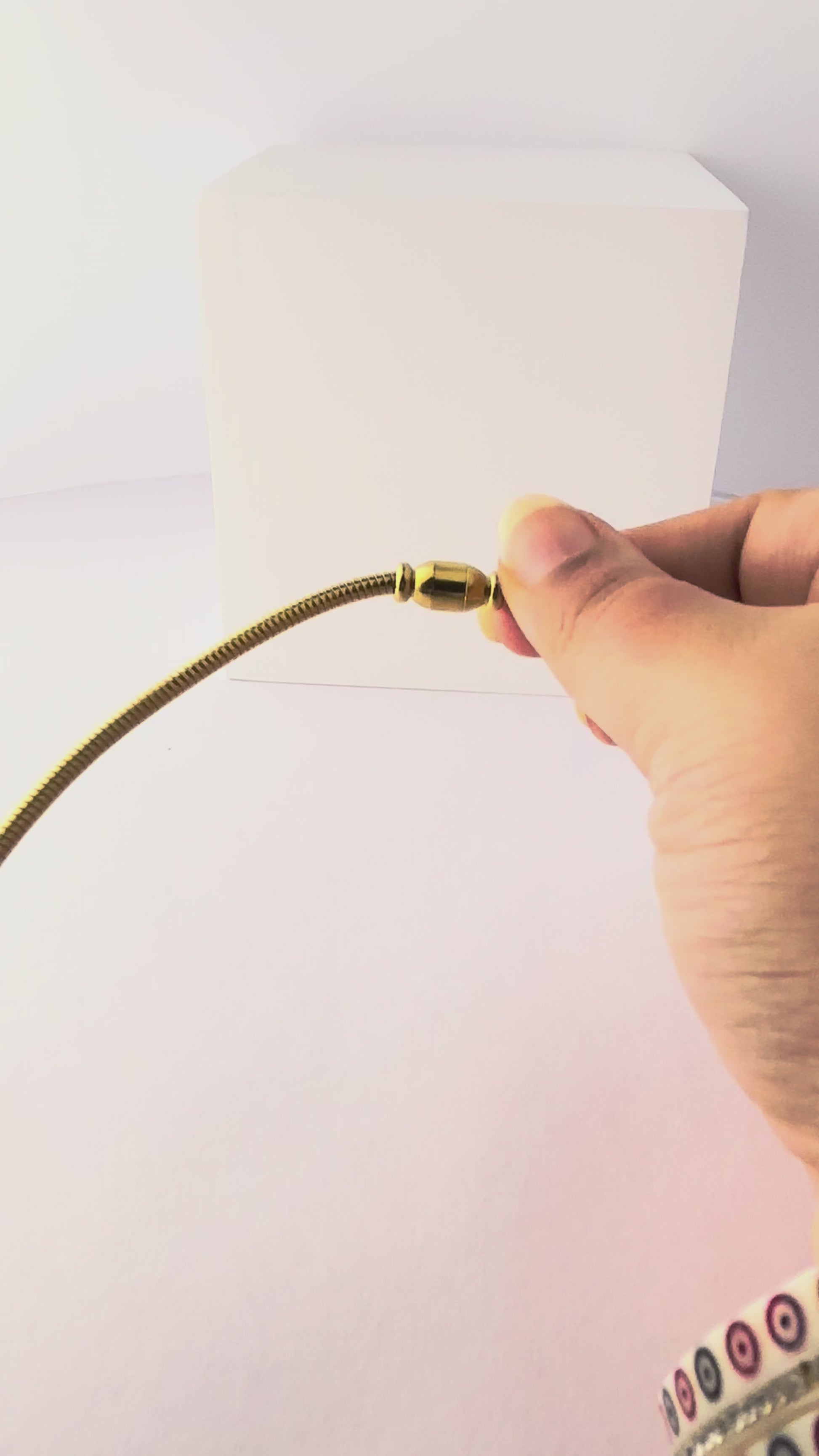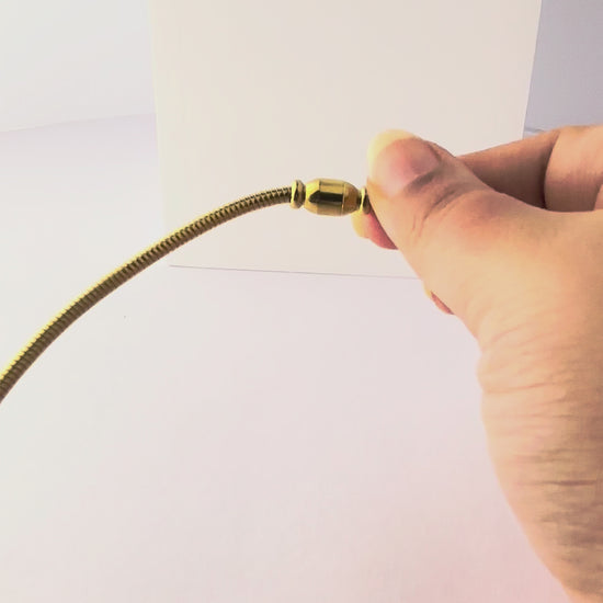 A sleek gold necklace with a delicate charm and secure magnetic closure for effortless elegance.