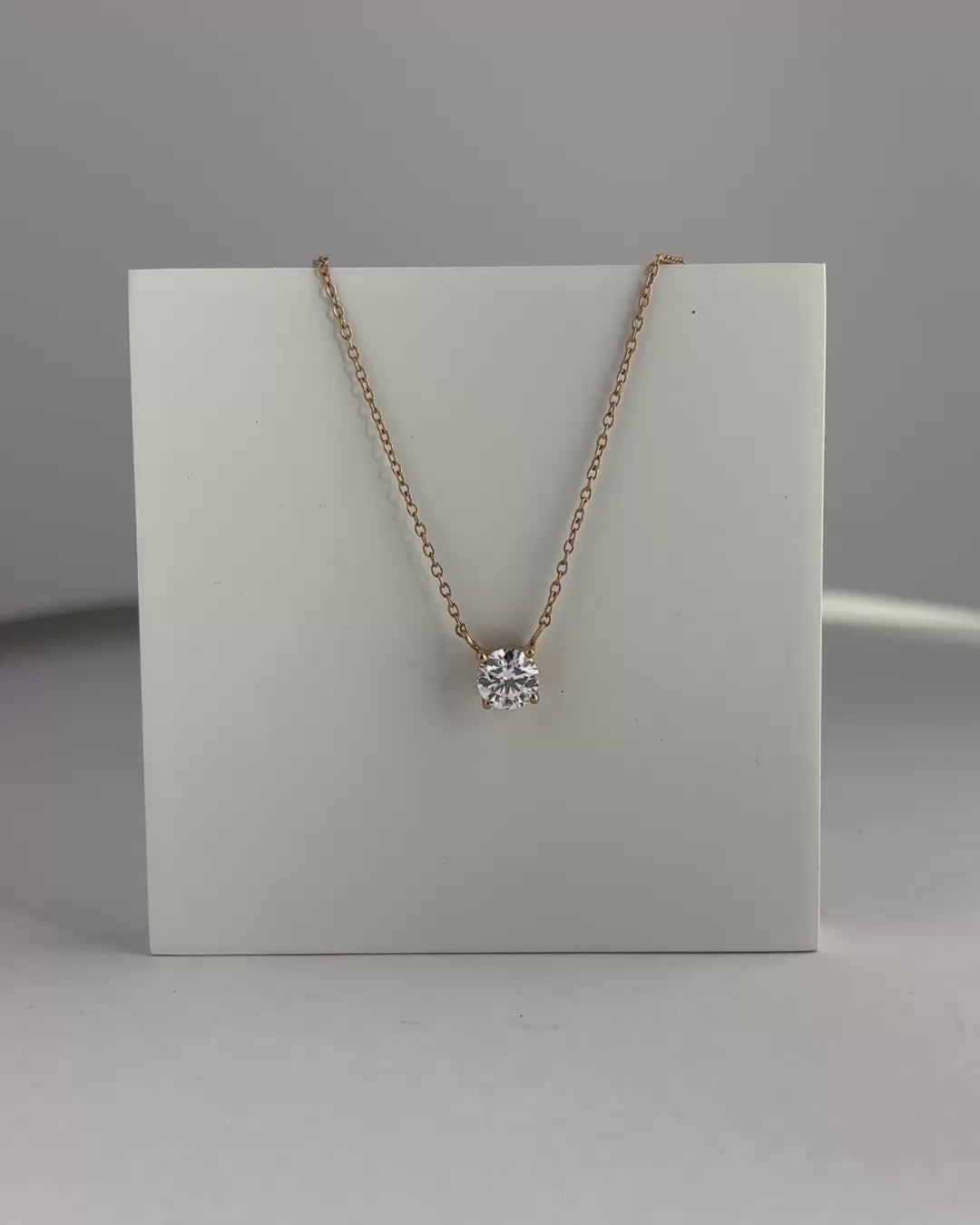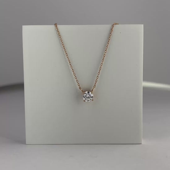 A romantic rose gold-plated necklace with a sparkling solitaire moissanite that radiates soft elegance.
