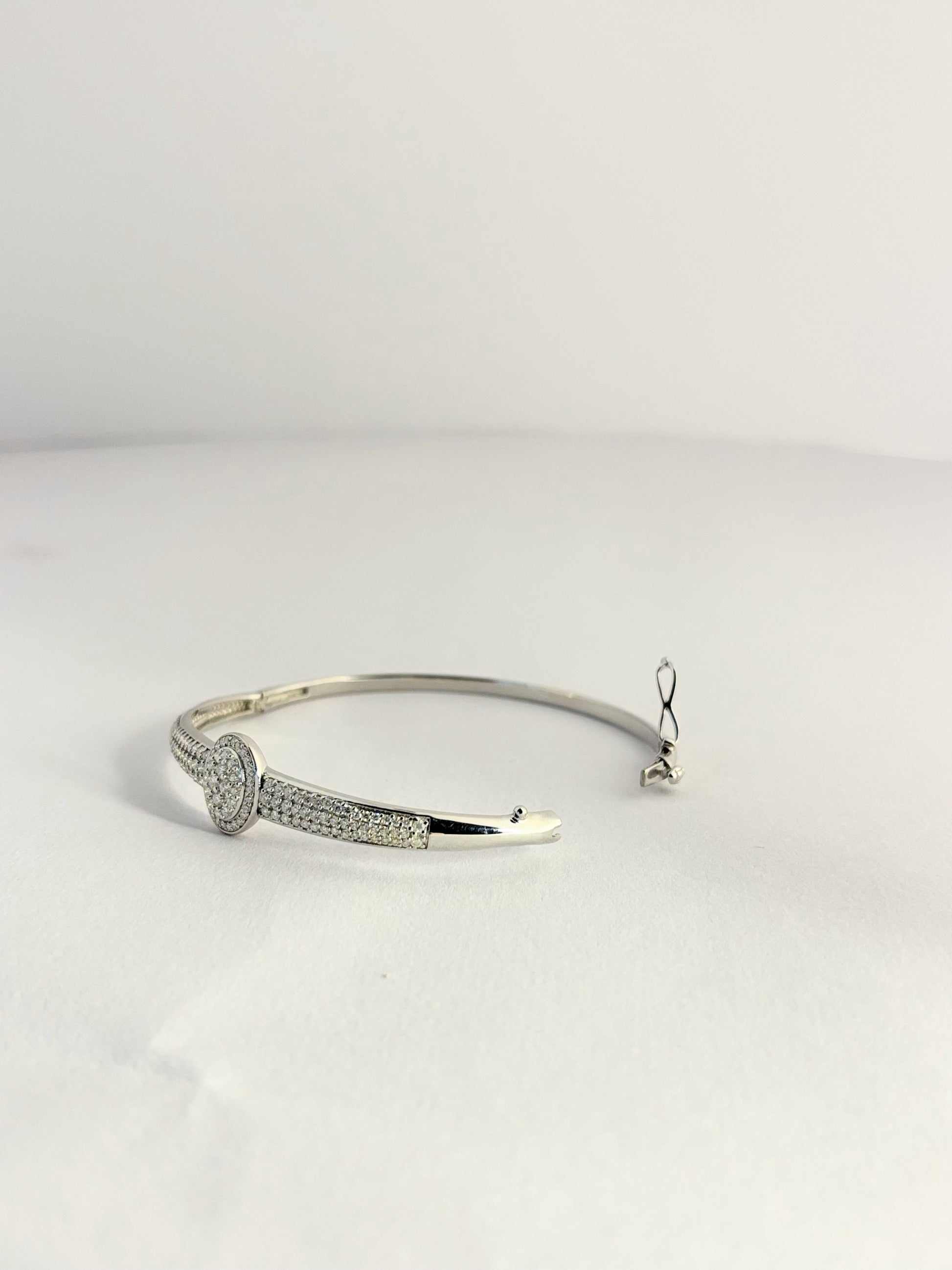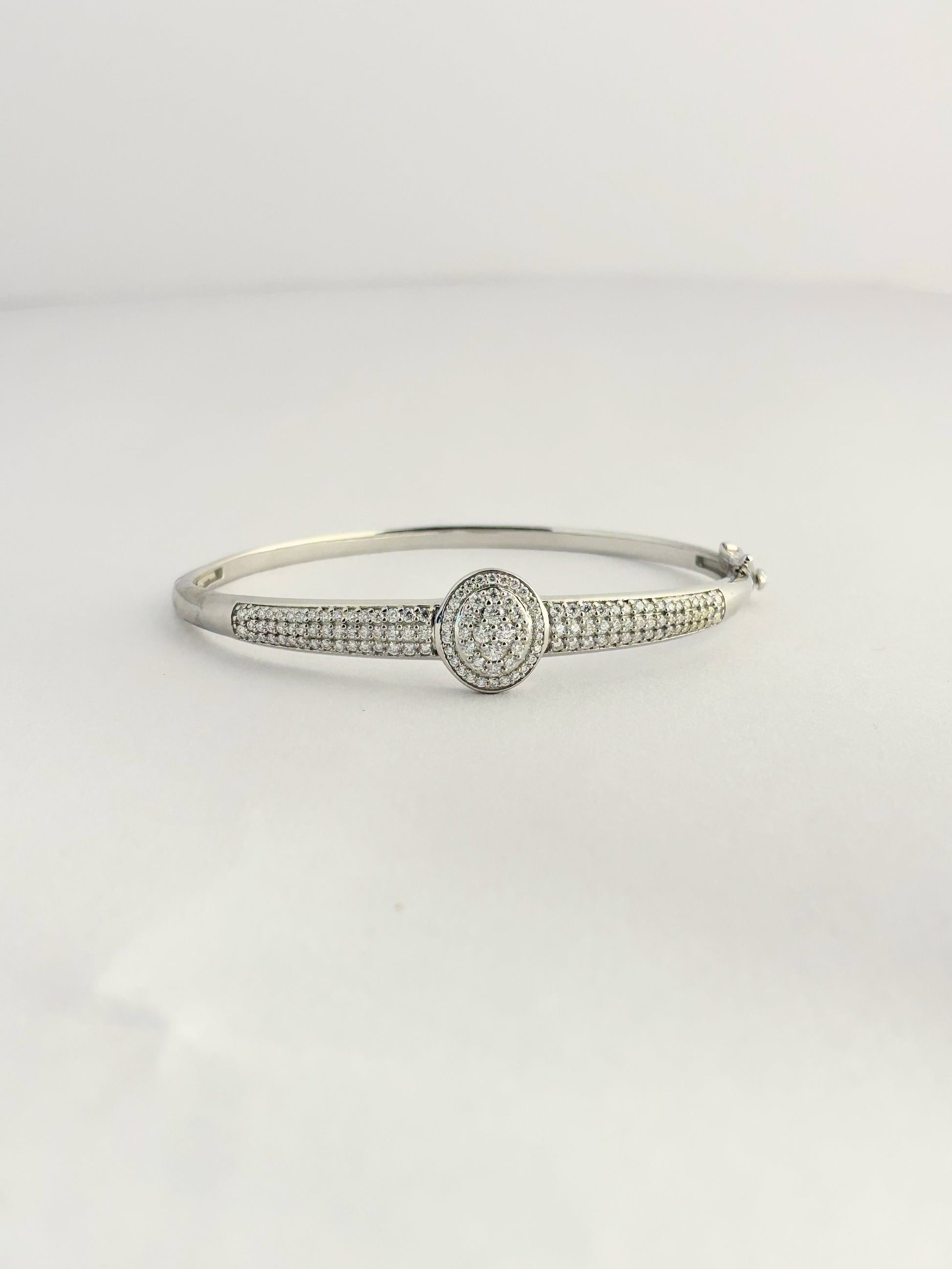 A sleek silver-plated bangle embellished with radiant moissanite stones, blending elegance with everyday charm.